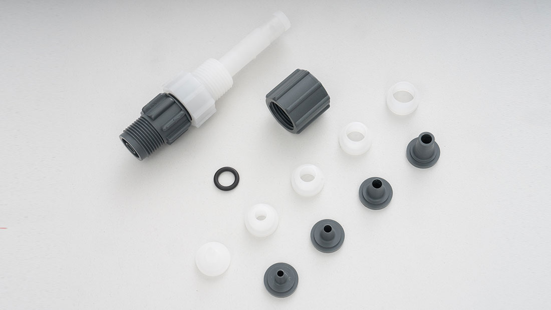 Durch Verwendung unterschiedlicher Anschlusssets können verschiedene Schlauchgrößen von 6/4 bis 12/9 miteinander verbunden werden.