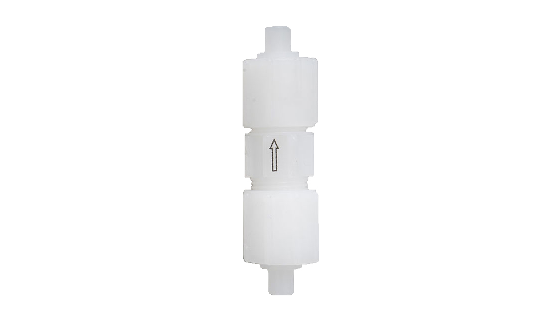 Mit beidseitigem Anschlussset zur Montage in der Schlauchleitung. Mit Rückschlagkugel, federbelastet mit Hastelloy C-Feder Vordruck: ca. 0,5 bar Schlauchanschluss: 8x5 Werkstoff: Gehäuse PVDF, Dichtungen PTFE Durch Verwendung unterschiedlicher Anschlusssets können verschiedene Schlauchgrößen von 6/4 bis 12/9 miteinander verbunden werden. |